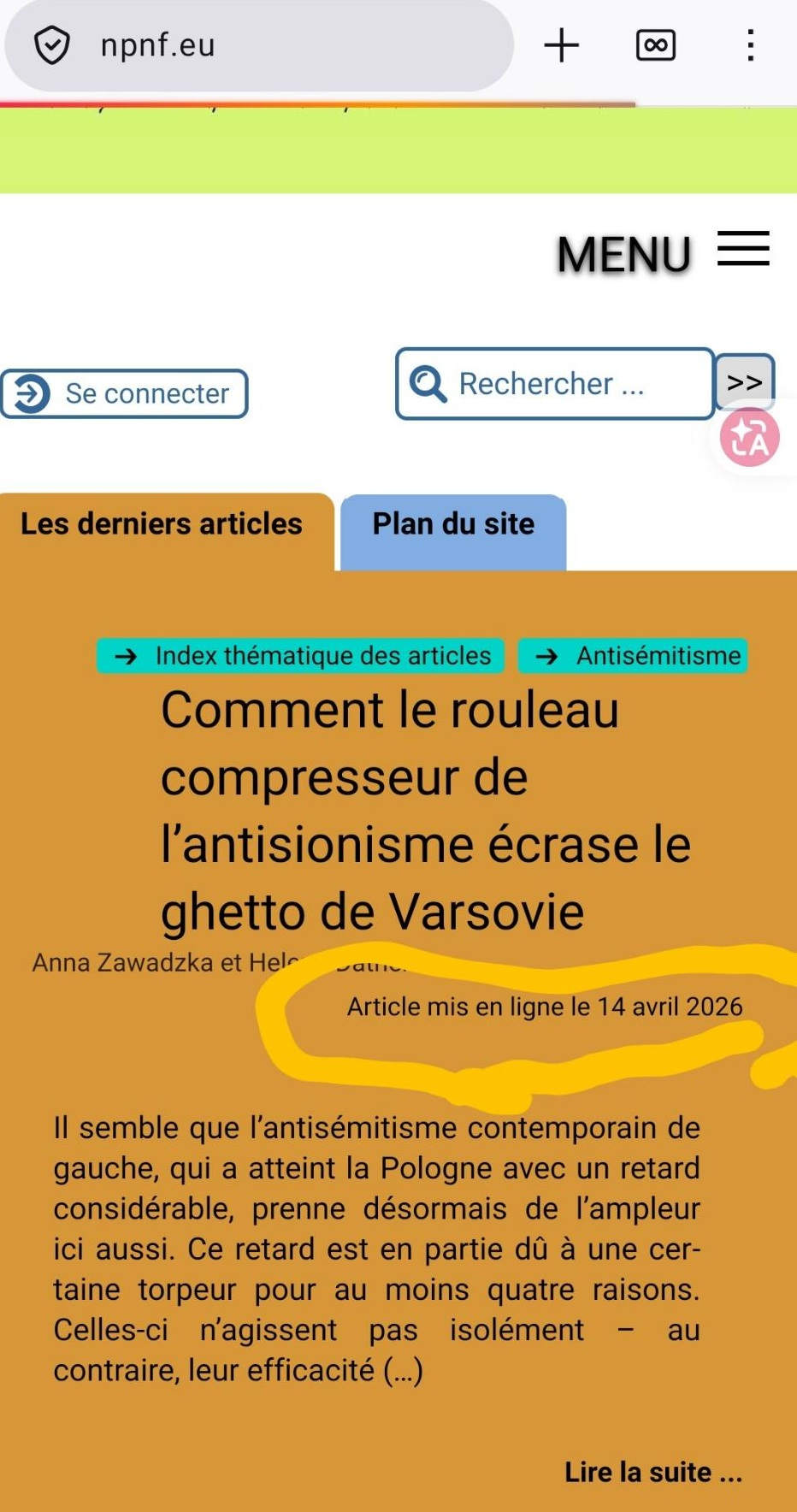 On pourrait sans doute attribuer une telle obsession à un début de sénilité. Mais M. Coleman n'est pas sénile. Et il y a de la méthode dans son délire. Par ses silences, par des déformations, par ses mensonges, M. Coleman prouve qu’il a un agenda à défendre. À qui en douterait encore, il suffit de jeter un œil sur l'immonde dégueulasserie que celui-ci vient de mettre en ligne, au moment même où devait se discuter le projet de loi Yadan visant à criminaliser l'anti-sionisme. À la une de son site ce gros titre : « Comment le rouleau compresseur de l’antisionisme écrase le ghetto de Varsovie ».